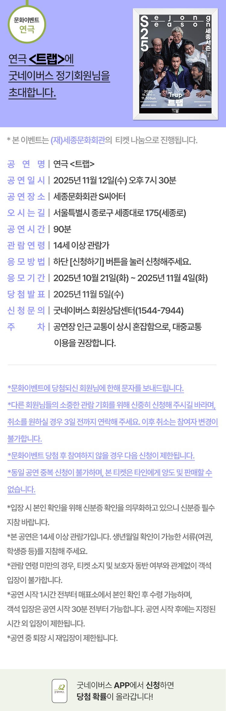 · 수집주체 | 사단법인 굿네이버스 인터내셔날 · 이용기간 | 해당 문화이벤트 종료 시까지 · 수집대상 | 문화이벤트 신청자 대상 · 수집목적 | 이벤트 참여 및 선정 / 당첨자 리스트 확인 · 처리항목 | 회원명 / 생년월일 / 휴대전화 *귀하는 개인정보 수집 및 이용 동의에 대한 거부 권리가 있으나, |