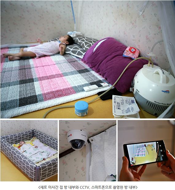 또한 희재를 눕혀놓는 방 안에는 cctv를 설치하여 어디서든 희재의 모습을 확인할 수 있습니다. 이제는 새로운 보금자리에서 치료에만 신경 쓰며 지낼 수 있게 되었습니다.