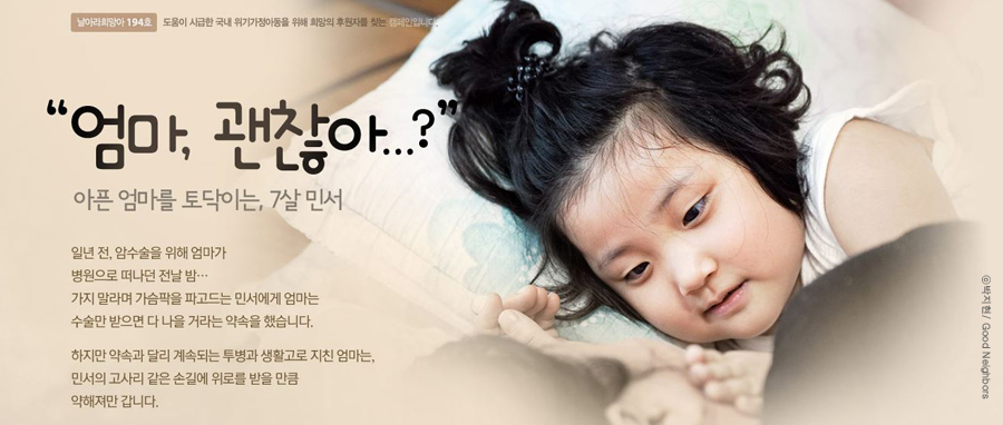 # 치료비와 생계비가 막막했던 상황의 민서네