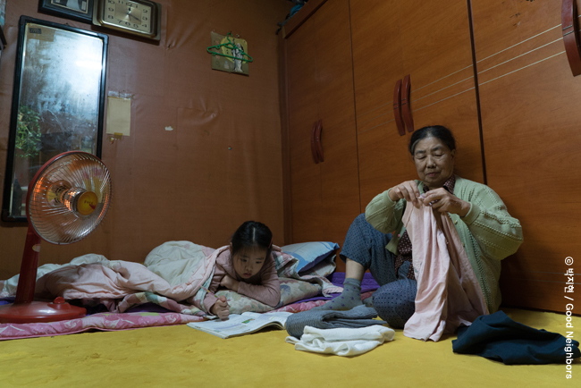 <사진 – 10년째 판자촌에서 거주하고 있는 유진이와 할머니>
