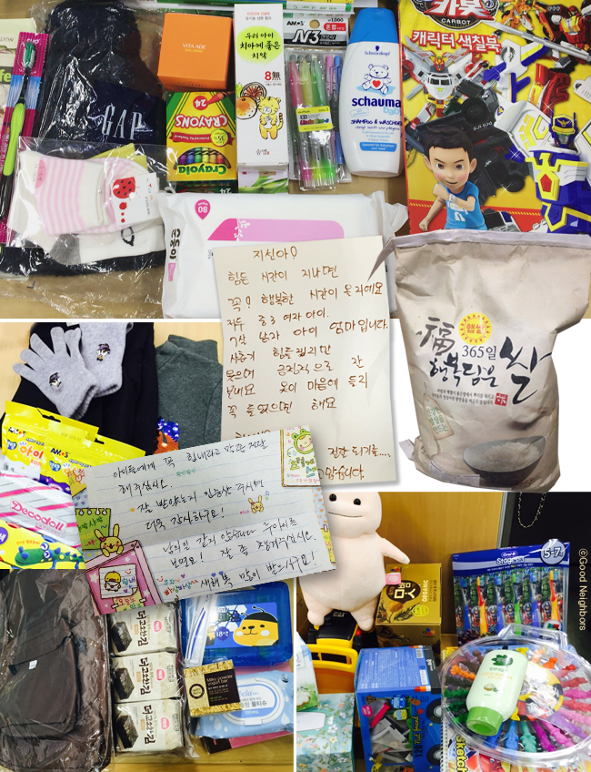 <지선이에게 전달된 후원물품과 응원 편지들>
