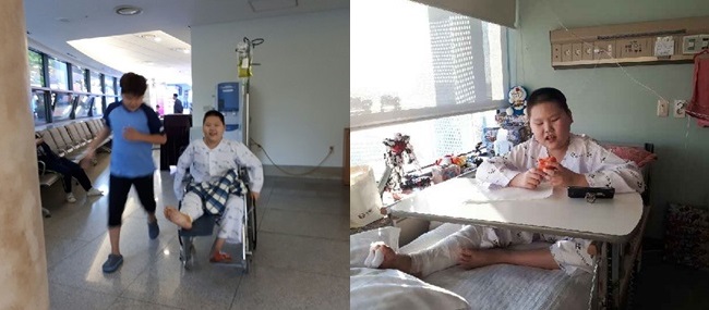 (좌) 병원에서 함께 있는 쌍둥이 형제, (우) 병원에 입원 중인 서준이 모습
