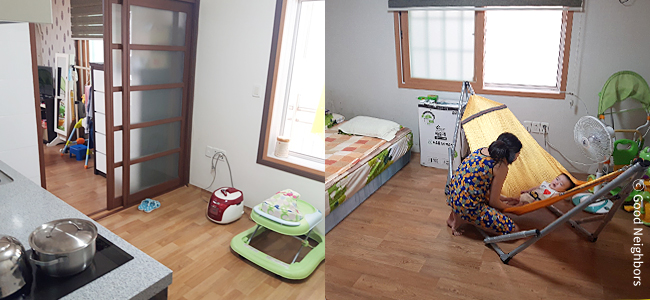 동맥관 개존증을 가지고 있던 범구는 퇴원 이후에도 지속적인 치료가 필요했습니다. 고속버스를 타고 다녀야하는 먼 본가 대신 병원 근처 방을 알아보았으나 저렴한 방은 곰팡이가 많이 슬어있고 우풍이 심하여 중환자실에서 나온지 얼마 되지 않은 범구가 생활하기 너무 열악했습니다. 후원자님들의 손길을 통해 범구네 가족들은 병원 근처 쾌적한 환경의 새로운 보금자리를 구할 수 있었습니다. 어머니는 어린 범구를 데리고 일주일에 한번씩 병원을 오가는 길이 한결 편해졌다고 하며 후원자님들께 감사함을 전했습니다.