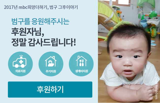 늦은 나이에 갖게 된 소중한 아이, 예상치 않게 빨리 세상 밖을 나온 범구에게 미안한 마음뿐이였지만 후원자님들의 지원을 통해 안정적인 환경 속에서 밝게 웃는 범구를 보며 힘을 낸다고 합니다.