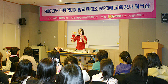아동학대예방프로그램인 CES, PAPCM은 아동, 부모, 교사를 대상으로 한 통합교육으로 진행되며 현장에서 교육을 진행할 교육강사를 모집하여 매해 교육강사 워크샵을 실시하고 있습니다.