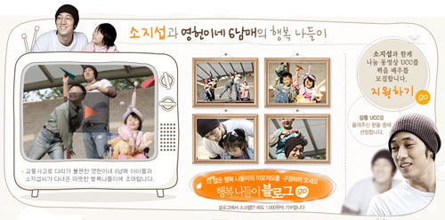 우리 단체는 인터넷 포털 다음과 배우 소지섭씨와 함께 "즐거운 변화, Happy 대한민국"이라는 UCC(User Created Contents) 온라인 나눔 캠페인을 진행합니다.