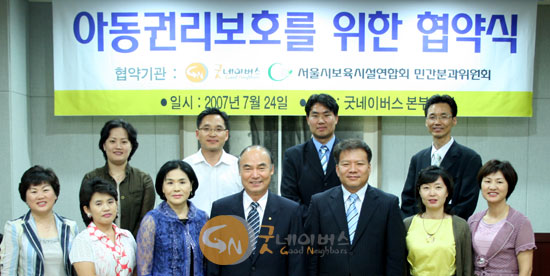 7월 24일(화) 협약식에는 우리단체 이일하 회장, 서울시보육시설연합회 민간분과위원회 곽현희 위원장과 임원단이 참석하여 아동권리보호를 위해 양 기관이 긴밀히 협력할 것을 약속하였습니다.