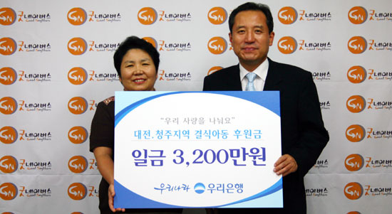 우리단체는 지난 8월 21일(화) 우리은행(은행장 박해춘)과 함께 기금 전달식을 가졌습니다.