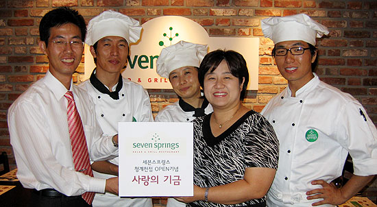 이 행사는 세븐스프링스 전 매장에 명함을 넣은 고객 중 추첨을 통하여 세븐스프링스 청계천 매장 pre-opening에 초대된 고객을 대상으로 진행되었습니다. 기부금은 행사에 참석한 고객들의 식사금액에 매칭그랜트 방식으로 기업에서 조성한 기부금이 더해져 우리 단체에 전달되었습니다.