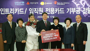 KB국민은행은 2006년 7월 포인트리 라임카드를 출시하며 라임카드발급 1장당 1,000원씩을 적립, 우리단체에 기부하기로 하였는데 2007년 1년동안 쌓여진 포인트리카드 발급기금을 이날 기부한 것입니다.