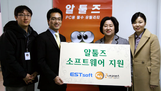 이스트소프트에서는 알집, 알씨 등 자사에서 개발한 알툴즈 프로그램을 사용할 수 있는 통합팩 300copy를 우리단체 사업장에 무료로 기부해 주었습니다.