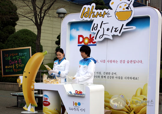 Dole Korea는 지난 4월 7일(월) 여의도역을 시작으로 출근하는 직장인들에게 아침식사를 대신할 수 있는 바나나를 나누어주는 ‘바나나는 밥이다’ 연중 캠페인과 함께 ‘나눔의 밥 100원의 기적’ 프로젝트를 실시하여 행사장의 설치된 모금함과 100원의 기적 홈페이지(http://www.100won.org)를 통해 나눔 문화를 확산하는데 동참하고자 합니다.