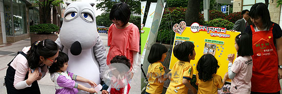 이날 행사에는 가족 나눔 캠페인 ‘미소가’에 대한 소개와 더불어 시민들에게 가족이 함께 나눔을 실천할 수 있는 방법에 대해 안내하는 시간을 가졌습니다. 평소 나눔을 실천해온 아역 탤런트 가족들(이 함께 참여한 행사에서 나눔 가족들)이 참여하여 ‘행복한 나눔 가족 100원의 기적’ 저금통을 들고 소외된 지구촌 이웃을 위해 나눔을 실천할 것을 약속했습니다. 또한 ‘행복한 나눔 가족, 100원의 기적’ 홍보대사 빼꼼과 함께 시민들에게 저금통을 전달하며 가족나눔을 실천할 수 있도록 안내하였습니다.