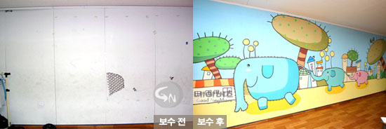 이날 봉사활동은 한국애보트 임직원 17명과 성동좋은이웃지역아동센터 아동 15명이 함께 부서진 벽면을 아동들의 정서와 건강에 도움이 되도록 보수, 장식하였으며 풍선아트 만들기와 간식시간도 함께 가졌습니다.