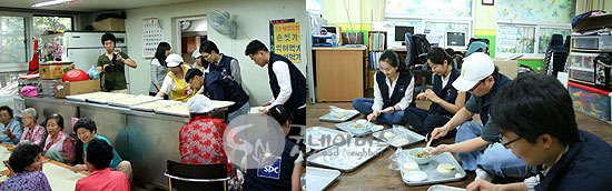 방화2종합사회복지관의 지역사회보호사업의 일환으로 진행된 이번 자원봉사는 복지관을 이용하는 65세 이상 어르신 160명에게 점심을 제공하고, 거동이 불편한 어르신 40세대에는 임직원들이 직접 만두를 빚고 만두국을 만들어 어르신들께 대접하는 시간을 가졌습니다.