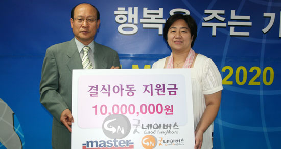 우리단체는 지난 9월 9일(화) 마스터자동차관리㈜로부터 결식아동 지원금 1천만 원을 전달받았습니다.