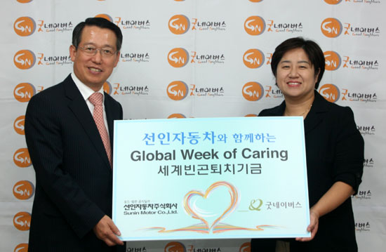‘Global Week of Caring 세계빈곤퇴치기금’은 글로벌 기업 포드에서 매년 각국의 자회사 회원들을 대상으로 행사기간동안 차량무상점검 실시 후 발생한 정비 매출액의 5%를 자선기금으로 적립하여 마련한 것으로, 국내에서는 포드&링컨 공식딜러인 선인자동차에 의해 조성되었습니다.