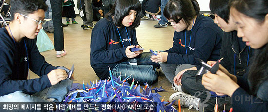 우리단체 평화동아리는 2007년 3월부터 시작하여 현재 전국 102개 중고등학교, 1,996명의 평화대사(PAN)로 조직되어 있으며, 이번 캠프는 우수 평화동아리의 리더 40명과 대학생 교육강사(PAN-FT) 9명이 참여하였습니다. PAN 자세히 보기