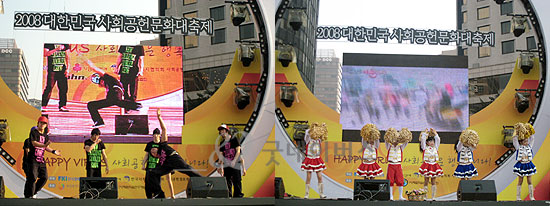 우리단체는 지난 17일(금), 18일(토) 양일간에 걸쳐 시청 앞 광장에서 진행된 ‘2008 대한민국 사회공헌문화대축제’에 참가하였습니다.