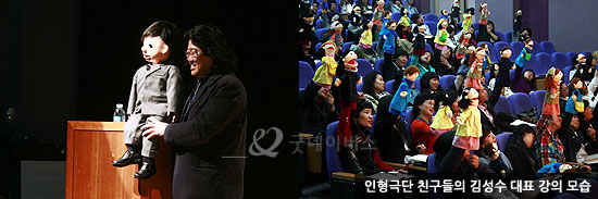 워크샵 일정의 마지막 시간에는 김성수 대표(인형극단친구들)의 인형극 기본기 익히기 및 실제 성학대 예방교육에 어떻게 적용할 지에 대한 강의가 있었습니다. 실무자와 교육강사들은 김성수 대표의 공연진행, 인형 및 인형 목소리 연기, 무대 운용에 대해 강의를 들으며 한시도 눈을 떼지 못하고 강의에 집중하였습니다. 교육에 참여한 교육강사는 실제 교육현장에서 고민하고 잘 고쳐지지 않았던 점들에 대해 집어주고, 실제로 익힐 수 있는 시간을 갖는 의미 있는 시간이었다고 하였습니다.