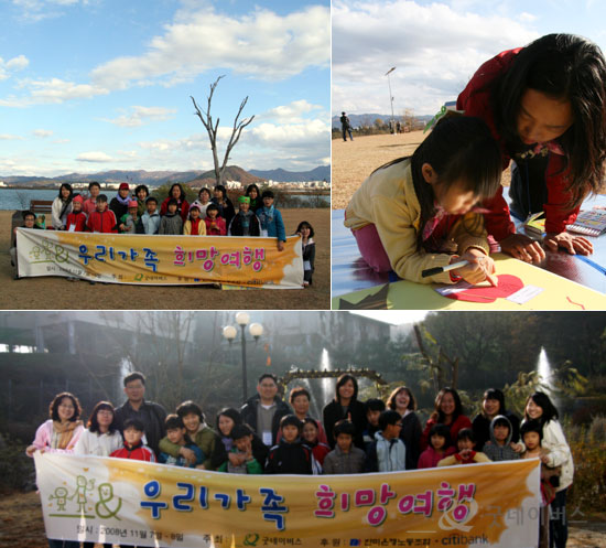“우리가족 희망여행”이라는 주제로 조손가정, 한부모가정, 저소득가정 등 총 6개 가정과 아동 2명, 후원사인 한미은행 노동조합 자원봉사자 등 총 27명이 참여한 이번 캠프는 가족간 갈등 상황을 풀어내는 마음드라마(사이코드라마), 4륜 오토바이 체험, 애니메이션 박물관 견학, 가족 행복나무 만들기, 바비큐 파티 등 가족들이 함께 마음을 나누며 즐거운 추억을 간직할 수 있는 프로그램으로 진행되었습니다.