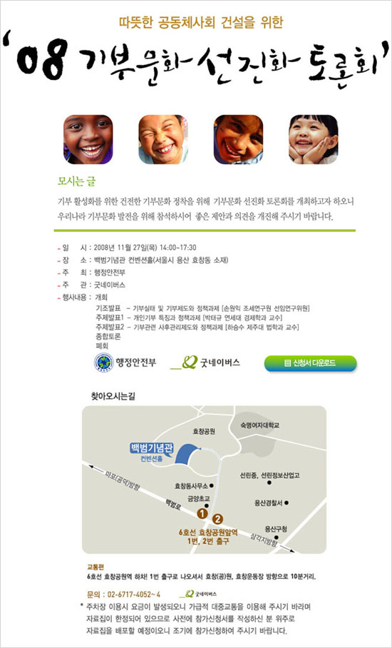 ▷ 일시 : 2008년 11월 27일(목) 14:00~17:00 (접수시간은 13:30 부터입니다.)