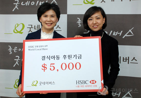 우리단체는 지난 12월 11일(목), HSBC 은행(은행장 사이먼 쿠퍼) 월드 로컬 히어로 김현숙 상무로부터 저소득가정 아동을 위한 급식지원기금을 전달 받았습니다.