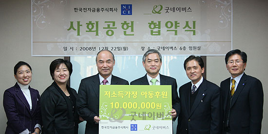우리단체는 지난 12월 22일(월) 한국전자금융주식회사(대표이사 박종인)와 2009년 사회공헌 협약을 체결하였습니다.