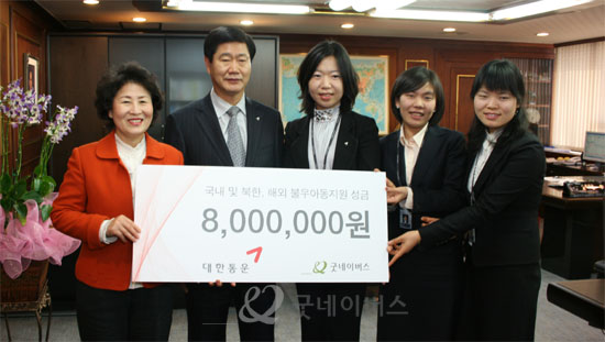우리단체는 지난 12월 26일(금) 대한통운 여사원들 모임 ‘주홍회’에서 전세계 빈곤아동 지원을 위해 우리단체에 후원금 800만원을 전달하여 주셨습니다.