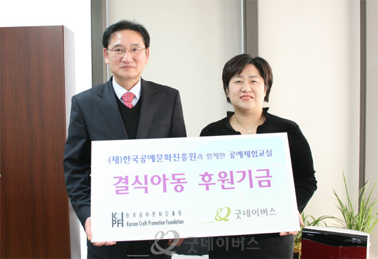 우리단체는 지난 12월 3일(수)부터 7일(일)까지 (재)한국공예문화진흥원(http://www.kcpf.or.kr)에서 2008공예트렌드페어 “결식아동돕기 공예체험” 행사를 통해 모아진 후원금을 전달받았습니다.