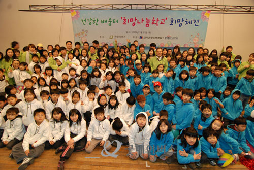 이번 ‘희망나눔학교 희망체전’은 서울염강초등학교 등 200여명의 아동들과 자원봉사자, 그리고 방학교실을 후원하는 한미은행노동조합, 시티은행관계자, 홍보대사 김혜수씨 모두 청백의 옷을 나눠 입고 봄, 여름, 가을, 겨울이란 팀으로 나눠져 줄 넘어가기와 풍선기둥 세우기 등 다양하고 재미있는 게임들로 한 데 어울려 신나는 시간을 보냈습니다.