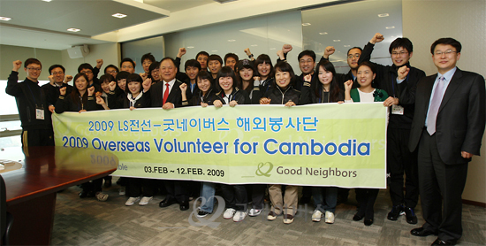 LS전선-굿네이버스 캄보디아 해외봉사단은 지난 2007년 8월과 2008년 2월과 8월에 각각 실시되었던 인도와 베트남, 방글라데시 해외봉사단에 이은 “마음 4기” 해외봉사단으로서 장차 글로벌 리더로 성장할 대학생을 대상으로 해외자원봉사활동의 기회를 제공하여 국제 경쟁력과 자아개발 및 봉사 능력을 향상하기 위해 진행됩니다.