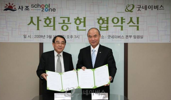 사조그룹은 2009년 한 해 동안 ‘스쿨존’ 제품 판매수익금의 1%와 분기마다 사조에서 생산되는 제품을 국내 저소득가정 아동을 위해 지원하기로 하였습니다. ‘스쿨존(School Zone)’은 청소년들이 안전하고 맛있는 식사를 할 수 있도록 사조그룹 계열사가 공동 개발한 학교 급식 전용 식자재 브랜드이며, 특별히 이번 협약식을 통하여 사조그룹 임직원들이 저소득가정 아동지원 프로그램에 참여하기로 하였습니다.