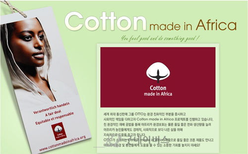 우리 단체는 OTTO(대표이사 마커스 브락만)와 함께 “Do something good” 캠페인을 진행합니다. 아프리카에서 친환경적인 재배 공법을 통해 품질 좋은 코튼으로 만든‘Cotton Made In Africa’ 제품을 판매한 수익금의 5%를 기부하며, 이는 전세계 빈곤 아동들을 위해 쓰일 계획입니다. 전세계빈곤아동의 좋은 이웃이 되어주신 OTTO 임직원분들과 회원분들께 감사드리며, 이번 캠페인에 많은 관심과 참여 부탁드립니다. 카카오링크 url 이전글이동 목록 다음글로이동