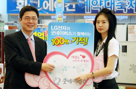 우리단체는 LG전자(대표:남 용)와 전국 LG베스트샵 600개 매장에서 5월 11일부터 31일까지 고객이 매장을 방문할 때마다 100원씩 적립하는 '100원의 기적'캠페인을 진행하고 있습니다. LG전자는 고객이 참여하는 '착한 프로모션'을 올해 여러 테마로 나눠 선보이면서 LG전자 전문매장이 좋은 매장, 좋은 이웃이 되도록 노력할 계획이라고 밝혔습니다. 행사기간 마련된 기금은 국내 결식아동을 돕는데 사용됩니다. 이웃을 도울 수 있는 이번 행사에 많은 관심과 참여 바랍니다. 카카오링크 url 이전글이동 목록 다음글로이동