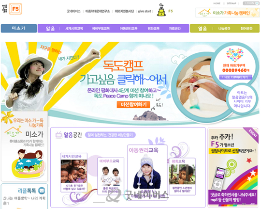'알음열음F5'에서는 세계시민교육, 평화교육 등 청소년을 위한 다양한 온라인 교육 컨텐츠를 제공하고 있습니다. 그리고, 이러한 나눔교육과 더불어 다양한 나눔이벤트 참여 등 사이트활동을 통해 쌓인 포인트로 손쉽게 기부를 체험해 볼 수 있는 '하트기부 프로그램'이 함께 운영되고 있습니다. 청소년회원들이 하트포인트를 이용하여 기부에 참여하면 하트당 100원 상당의 후원금을 롯데홈쇼핑에서 지원하는 방식이며, 이를 통해 청소년들도 어렵지 않게 나눔을 실천해볼 수 있습니다.