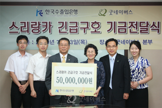 스리랑카의 긴급구호사업을 위해 한국수출입은행 임직원들이 급여 반납에 참여하여 5천만원의 기금을 전달해 주셨습니다. 이날 행사에 참여한 최정하 수석부행장은 “내전 종식 이후 난민캠프의 긴급한 상황을 언론을 통해 접해왔는데, 임직원이 십시일반 모은 기금이 도움이 절실히 필요한 이들에게 전달 될 수 있어 더욱 의미있다”고 소감을 전해주셨습니다.