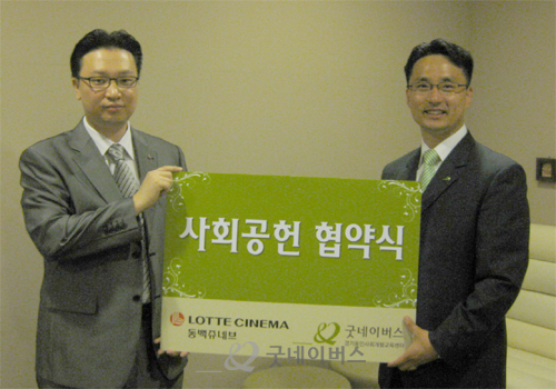 이번 협약식을 통해 롯데시네마 동백쥬네브는 굿네이버스 경기용인지부 ‘2009희망나눔학교 여름방학교실’과 ‘Young Power School’에 참여하는 아동으로 평소 문화체험 활동의 기회가 적은 소외계층 아동과 자원봉사자 180명에게 무료 영화 관람의 기회를 제공 할 예정입니다.