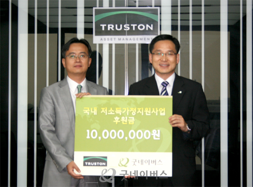 우리단체는 지난 8월 25일(화) 트러스톤자산운용㈜으로 부터 국내 저소득가정 지원사업기금 1,000만원을 전달받았습니다. 트러스톤자산운용㈜은 1998년 아이엠엠투자자문㈜으로 설립되어 2008년 트러스톤자산운용㈜로 사명을 변경하였으며, 2007년부터 순이익의 1%를 사회환원하고 있는 자산운용사입니다. 사회환원을 통해 기업의 사회적 책임을 계신 트러스트자산운용㈜과 임직원 여러분께 진심으로 감사드리며, 앞으로도 지속적인 관심 부탁드립니다. 카카오링크 url 이전글이동 목록 다음글로이동