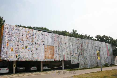 지난 9월 12일(토) 가족과 아동이 함께 참여한 희망메세지 손수건 3만장이 설치프로젝트작가 후지와라 요지로에 의해 헤이리 예술마을에 위치한 ‘금산갤러리’와 ‘더 차이’ 외벽에 덮여졌습니다. 그리고, 금산갤러리 내에서 진행된 ‘후지와라 요지로와 함께하는 착한 사람들展’ 이라는 타이틀로 88인의 작가분들의 기증작품을 전시하였으며, 기증작품 판매 수익금의 일부와 손수건kit 판매 수익금을 제3세계 빈곤 아동들을 위해 지원 해주셨습니다. 문화예술활동을 통해 나눔 확산에 힘써 주신 금산갤러리 관계자분들께 감사드립니다. 카카오링크 url 이전글이동 목록 다음글로이동