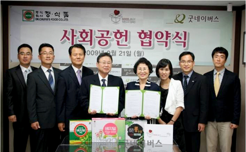 ㈜정ㆍ식품(www.vegemil.co.kr)은 이번 협약을 통해 우리단체의 착한 소비 캠페인 “GOOD_BUY”에 참여하여 베지밀 판매수익금의 일부를 후원하기로 하였으며, 연간 2,000만원 상당의 자사 제품을 우리 단체의 국내 결식아동을 위해 지원할 예정입니다.