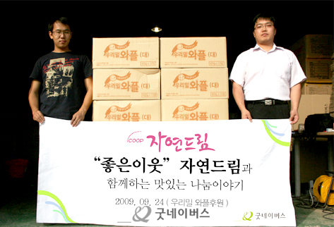 우리단체는 지난 9월 24일(목), ㈜자연드림(대표 권영준)으로부터 어린이간식을 후원받았습니다. ㈜자연드림은 ICOOP생협연대 및 전국 iCOOP자연드림매장에서 8.15 독립기념일을 맞이하여 먹을거리로부터의 독립이란 내용으로 친환경 먹을거리의 안전성을 홍보하기 하기 위해 8월 14~23일 10일간 어린이 간식류 2종(우리밀와플, 코코드림)의 매출액 10%에 상당한 물품을 후원 해주셨습니다. 아이들을 위해 좋은이웃이 되어주신 자연드림과 임직원 여러분께 감사드립니다. 카카오링크 url 이전글이동 목록 다음글로이동