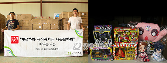 우리단체는 지난 9월 24일, ㈜반다이코리아(대표 에모또 요시아끼)로부터 장난감 약 5,000점을 후원받았습니다.