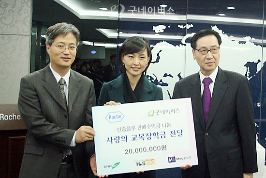 또한 한국로슈진단은 대리점 3곳(다인바이오, 메가바이오, HNS Bio)과 함께 신종플루 진단검사 판매수익금의 일부를 우리단체에 기부하였습니다. 조성된 기금은 전국 39개 지부를 통해 저소득가정아동들에게 교복장학금으로 전달될 예정입니다.