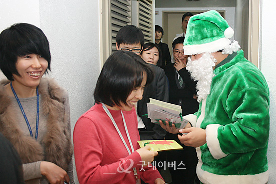 임직원들의 활발한 참여를 위해 14일(월)은 한진해운 본사를 산타어택하여 점심시간 임직원들에게 응원메시지 카드와 희망트리 입체카드를 전달하기도 하였습니다. 카드를 받은 임직원들은 깜짝 이벤트에 당황해 하면서도 연말 주변에 소외된 이웃들을 위한 희망트리캠페인에 참여하게 되어 기쁘고, 앞으로 이러한 일들이 많아졌으면 좋겠다는 이야기를 전했습니다.