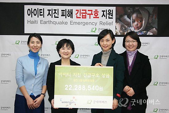웅진그룹(회장 윤석금)의 임직원들은 대규모 지진으로 큰 피해를 입은 아이티의 재난 복구 및 재해구호를 위해 기금 마련에 동참하였습니다.