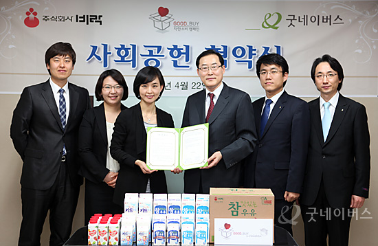 우리단체는 지난 4월 22일(목) 유업계의 전문 기업인 ㈜비락(대표 : 최성기)과 함께 사회공헌 캠페인 협약식을 진행하였습니다.