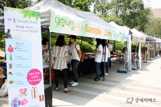 우리 단체는 대학생활문화정보지 '대학내일'과 함께 축제기간 중 나눔을 약속해주신 기부자들에게 최신 샘플을 증정하는 나눔샘플존 행사를 펼치고 있습니다. 이번행사는 대학생들이 축제기간동안 소액기부를 즐겁게 참여하여 나눔문화를 전달할 수 있는 기회가 될 것입니다.