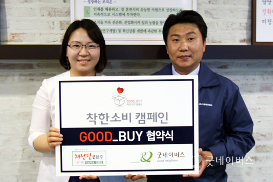 우리단체는 지난 지난 6월 7일(월) 야채가 신선한 집 채선당(대표이사:김익수)과 함께 “착한소비 캠페인 GOOD_BUY” 협약식을 가졌습니다.