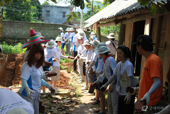 한편 19일(목)에는 로선초등학교 도서관 공사 현장에서 노력봉사도 진행했습니다. 도서관은 현대자동차 기술연구소로부터 약 2800만원 상당의 금액을 지원받아 건축 중인데, 책을 읽을 수 있는 독서실과 책걸상을 놓을 도서실 2개의 방으로 구성될 계획입니다. 독서실과 도서실에 필요한 책, 책장, 책걸상 등의 모든 물품 또한 현대자동차 기술연구소가 지원할 예정입니다. 로선초등학교 도서관은 우리단체 베트남지부가 로선 초등학교에 지원한 네 번째 건물이며, 도서관은 오는 10월에 건축이 완료될 예정입니다. 봉사단원들은 고된 노동이었지만, 아이들이 이곳에서 공부할 수 있다고 생각에 하나도 힘들지 않았다고 소감을 전했습니다.